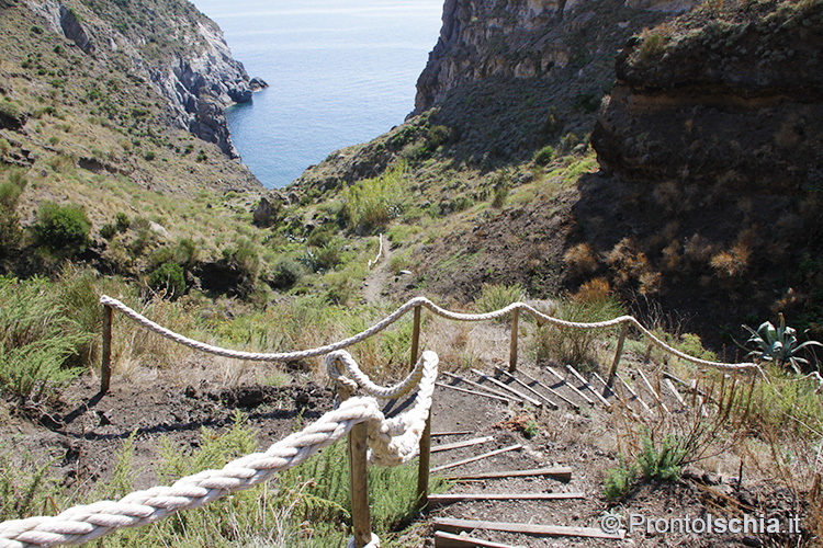 Attiguo al Monte di Panza c’è il sentiero che porta alla baia della Pelara, piccola insenatura incastonata tra le più famose cale di Sorgeto e della Scannella. Si tratta di un alveo naturale che arriva fino al mare, protetto ai due lati da imponenti pareti rocciose di chiara origine vulcanica. Il percorso affascina per la diversità degli scenari naturalistici che si susseguono: prima un bosco di lecci, poi una distesa di felci e infine un sentiero brullo interrotto qua e là da robuste agavi selvatiche. L’ultima parte della passeggiata presenta qualche difficoltà, anche se è decisamente la più bella di tutte. Chi non è allenato può anche fermarsi prima delle scale che portano al mare, evitando così la fatica della risalita.