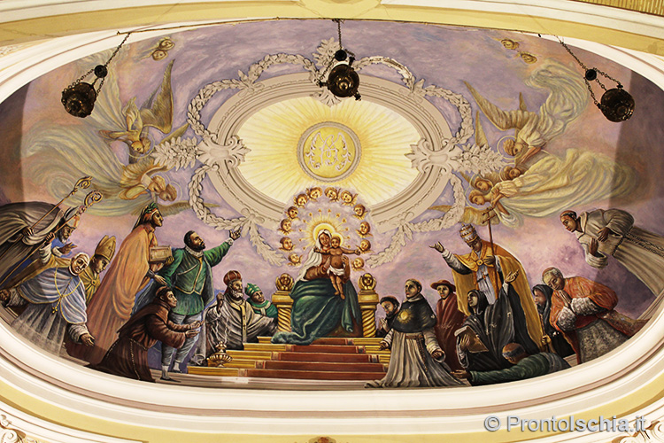 Assolutamente da vedere le due chiese, attigue, di Santa Maria di Costantinopoli e la Collegiata dello Spirito Santo. La prima è un'arciconfraternita, per diversi aspetti simile all'arciconfraternita Santa Maria di Visitapoveri a Forio. Come in quest'ultima, infatti, un coro di scranni lignei delimita l'unica navata e, sempre come in quella foriana, le pareti sono piene di tondi e affreschi. Mentre però le tele di Visitapoveri portano tutte la firma di Alfonso Di Spigna, pittore locale del XVIII secolo, gli affreschi di Santa Maria di Costantinopoli sono immagini devozionali di non elevato pregio artistico, ancorchè godibili alla vista. Si tratta di rappresentazioni del Vecchio e del Nuovo Testamento mentre alle spalle dell'organo, sopra il portale d'ingresso, campeggia un ritratto di San Giovan Giuseppe Della Croce, patrono dell'isola d'Ischia.