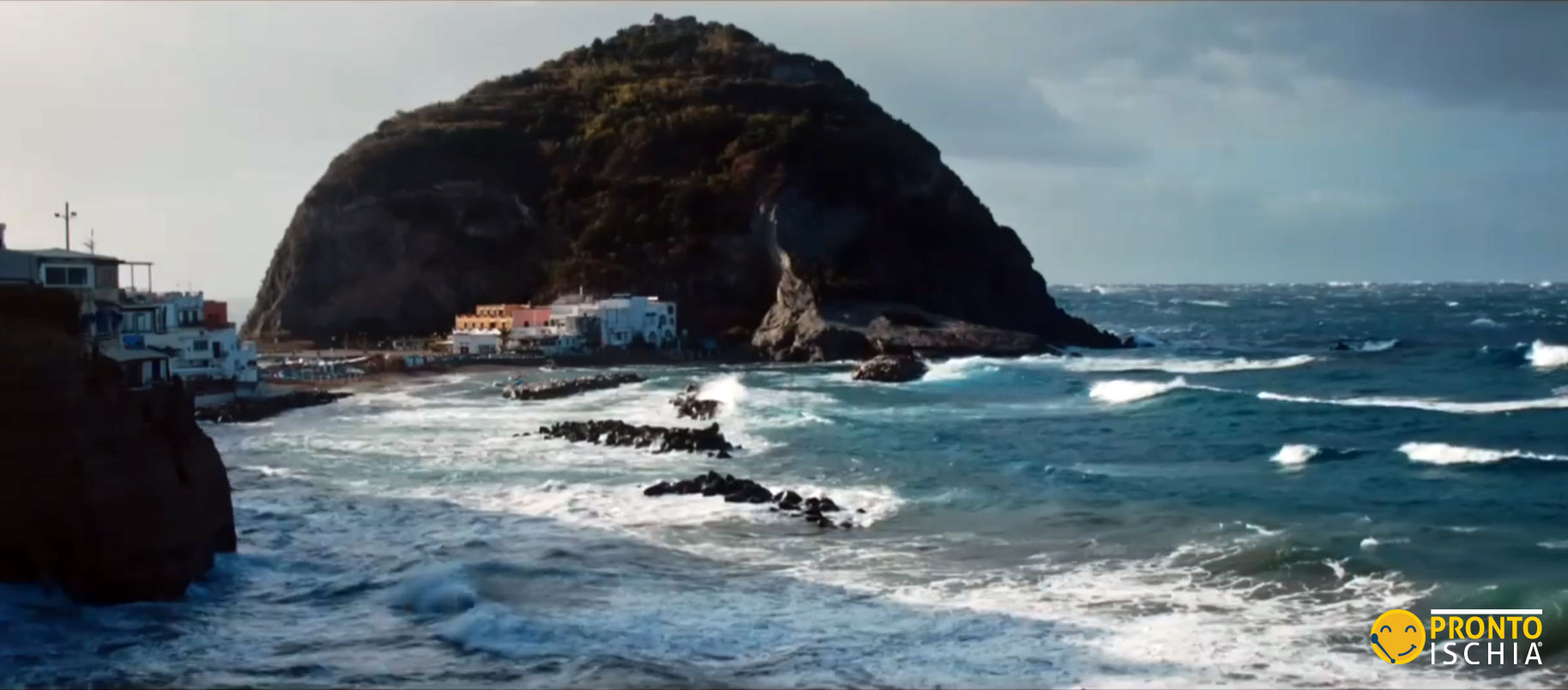I protagonisti si imbarcano alla volta dell’isola da Casamicciola. Sì avete letto bene: la cittadina termale è il porto, sulla terraferma, da cui Stefano Accorsi, Pierfrancesco Favino, Carolina Crescentini, Claudia Gerini e gli altri protagonisti della commedia salpano per l’isoletta dove ad attenderli ci sono Ivano Marescotti e Stefania Sandrelli (i nonni). Già solo la scelta di utilizzare il porto di Casamicciola come ambiente cittadino, testimonia la grande varietà di luoghi di cui dispone l’isola. Dal mare alla montagna, dalla periferia urbanizzata al borgo mediterraneo, Ischia non corrisponde all’immaginario classico di una piccola isola in mezzo al Mediterraneo. Da qui, forse, la più grande differenza rispetto alle sorelle Procida e Capri.