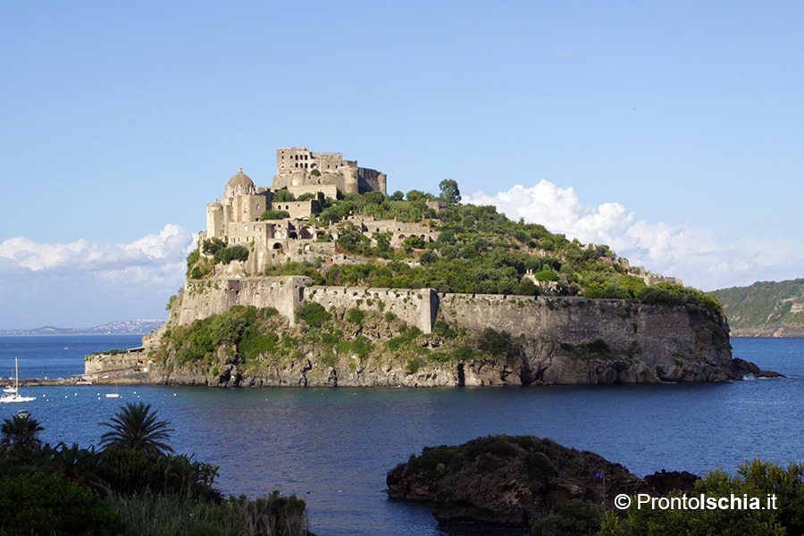 La fortezza di Alfonso il Magnanimo è senza dubbio l'immagine simbolo dell'isola. Insieme alla Chiesa del Soccorso di Forio, la cartolina che più ha contribuito alla fama turistica di Ischia. Alla fine del '500 su questo scoglio imponente a largo di Ischia Ponte vivevano quasi 5000 persone. Un vero e proprio paese, all'epoca chiamato "Insula Minor" per distinguerlo dall'"Insula Maior" coincidente con il resto dell'isola.