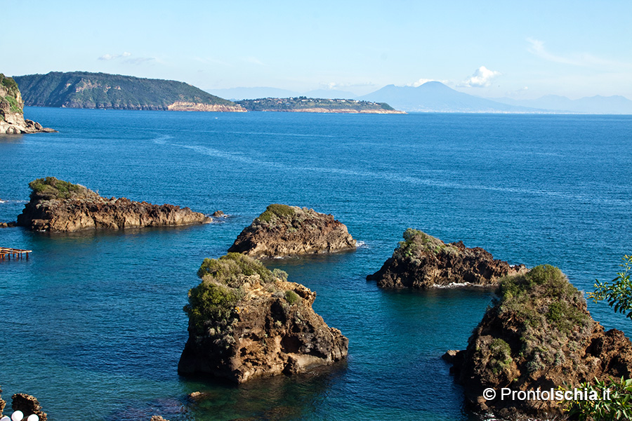 Gli scogli della festa più famosa dell'isola d'Ischia: Sant'Anna, la festa dei pescatori di Ischia Ponte. Questi scogli si trovano a Cartaromana, una delle zone residenziali più "in" del comune di Ischia. Poco distante, la Torre dei Guevara, fortezza a guardia del più importante Castello Aragonese.