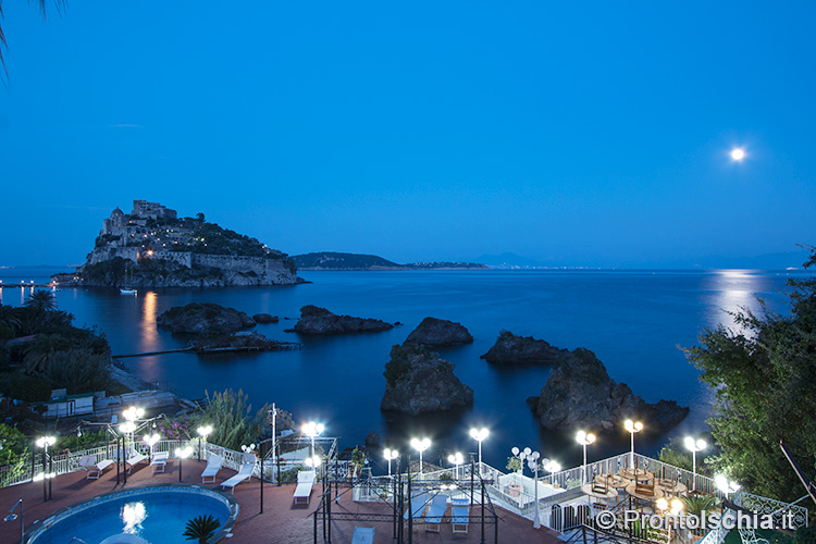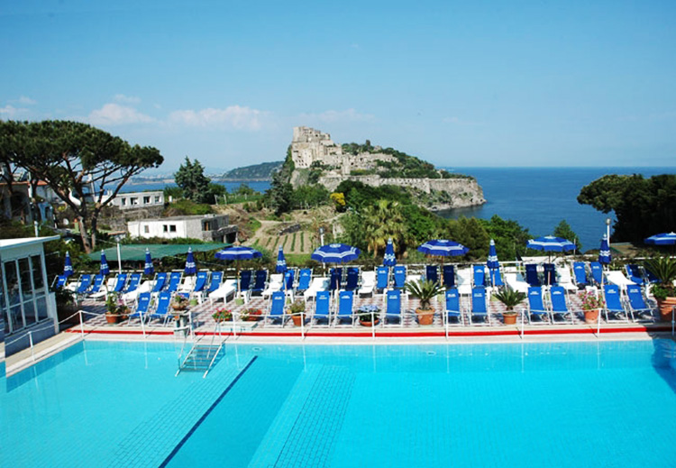 Il nome dell’albergo dice già tutto. A far da sfondo all’Hotel Miramare e Castello sono il mare e la vista, ravvicinatissima, del Castello Aragonese. Come l’hotel San Montano, anche il Miramare e Castello è un 5 Stelle dall’inconfondibile stile mediterraneo. Per rendersi veramente conto di cos’è l’architettura mediterranea, è necessaria una sosta sulla terrazza panoramica dell’albergo. La vista del borgo di Ischia Ponte, da un lato, e della Mandra, dall’altro, è quel che ci vuole per ritrovare l’armonia perduta e liberarsi immediatamente dello stress accumulato a causa del lavoro. Consigliato.