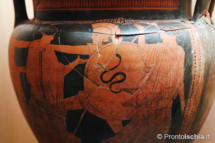 Ma Ischia, da un punto di vista storico e artistico, è famosa per il Museo archeologico di Pithecusae. Il Museo si trova a Lacco Ameno, all'interno di Villa Arbusto, ex dimora ischitana del Cav. Angelo Rizzoli, l'uomo che con i suoi investimenti contribuì enormemente alla rinascita turistica dell'isola d'Ischia. Nel Museo, oltre alla celebre Coppa di Nestore, sono custoditi numerosi reperti ceramici (vd. foto) della colonia di Pithecusa che - giova ricordare - fu il primo insediamento greco nel bacino del Mediterraneo occidentale.