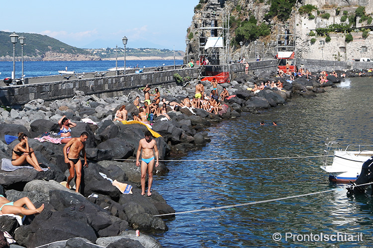 In alternativa ci sono gli scogli di Ischia Ponte, ai lati dell'istmo in pietra che porta al Castello Aragonese. Non tutti sanno che lo specchio di mare attorno la fortezza presenta una particolarità che ha richiamato sull'isola studiosi da tutto il mondo. Il riferimento è al complesso fenomeno dell'acidificazione dei mari che si manifesta con le migliaia di bollicine che, in alcuni tratti, dal fondo risalgono verso la superficie. Non è l'unica: i fondali di questo tratto di costa ospitano, infatti, una vasta prateria di Posidonia Oceanica, pianta fondamentale per l'ecosistema marino. Insomma il consiglio, se decidete di venire a mare sugli scogli di Ischia Ponte, è di portarsi dietro la maschera per esplorarne i fondali.