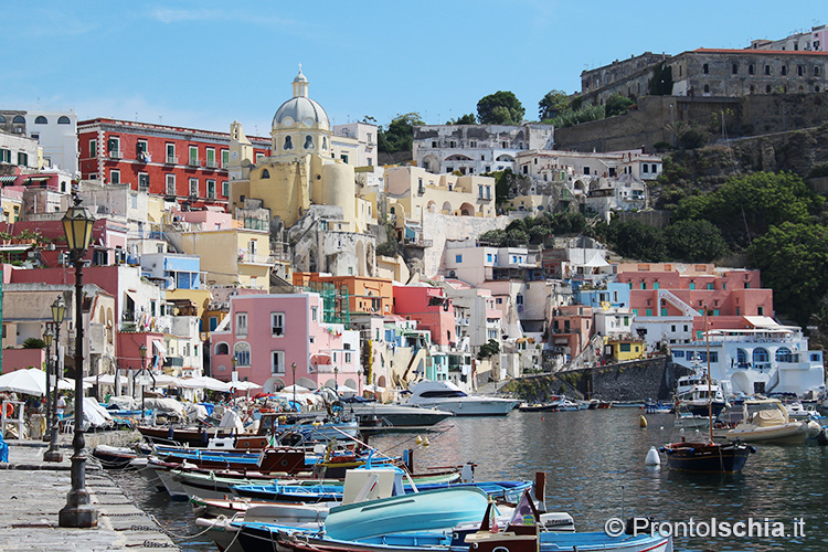 In ultimo, ma solo per ragioni espositive, c'è Procida. Piccola, colorata, dista solo 15 minuti di aliscafo - poco più di traghetto - da Ischia. Chi prenota una fuga d'autunno sull'isola d'Ischia farà bene a dedicare un giorno della sua vacanza all'affascinante "Isola di Arturo". Nella foto, la Corricella, la marina più antica di Procida, ultimamente balzata agli onori della cronaca per esser stata celebrata dalla Apple e da Microsoft nell'ambito di rispettive campagne promozionali dei propri prodotti (i-phone e tablet).