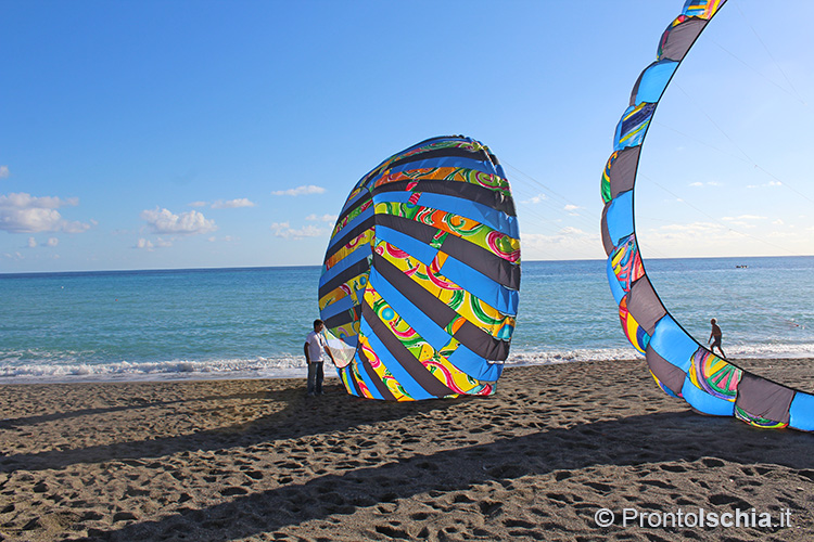 Non ci sono solo il mare, la natura e il sole a rendere Ischia meta autunnale per eccellenza. Anche il vento gioca la sua parte, stemperando la "nobile" malinconia cui abbiamo fatto riferimento poco sopra. Già, perchè il vento è necessario a far volare gli aquiloni e a far tornar bambini anche chi non lo è più da un pezzo. È accaduto ai Maronti, location del primo festival degli aquiloni sull'isola d'Ischia. Successo oltre ogni previsione e la promessa di dar seguito all'evento.